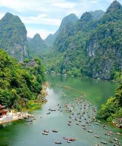 – Stop off at Hoa Lu, the ancient capital of Vietnam during the Dinh and Le dynasties. You will take a boat trip along Tam Coc River, called the Halong Bay on Land, filled with impressive caves and limestone mountains.